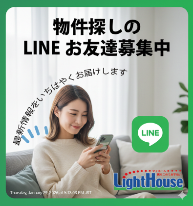 「不動産会社に連絡を取るって、ちょっと勇気がいる」なんて思っていいる方。LINEで気軽にお問合せ下さい。お客様の用事が済めば、ライトハウスをお友だちから解除していただいても結構なんです。
