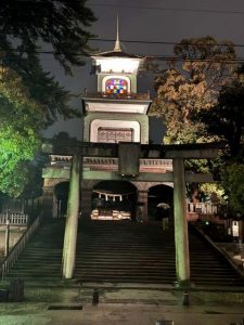 1日目ライトアップされている雨の尾山神社。