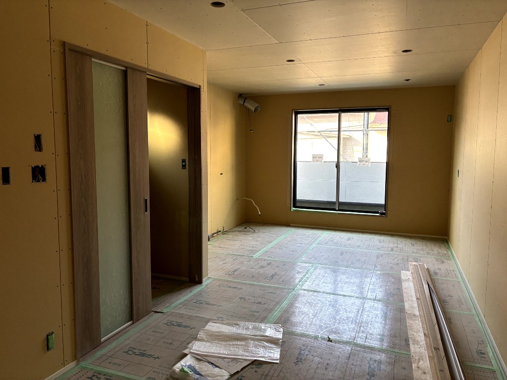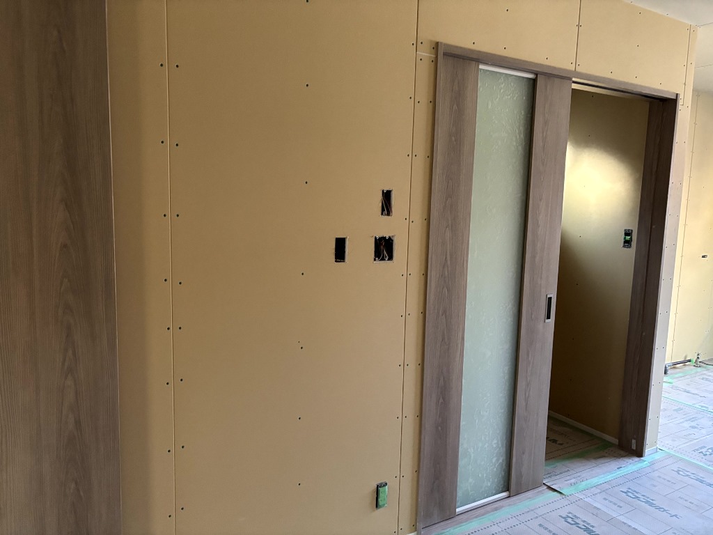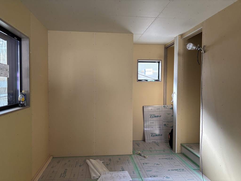 室内の壁天井のボード貼が完了しました。