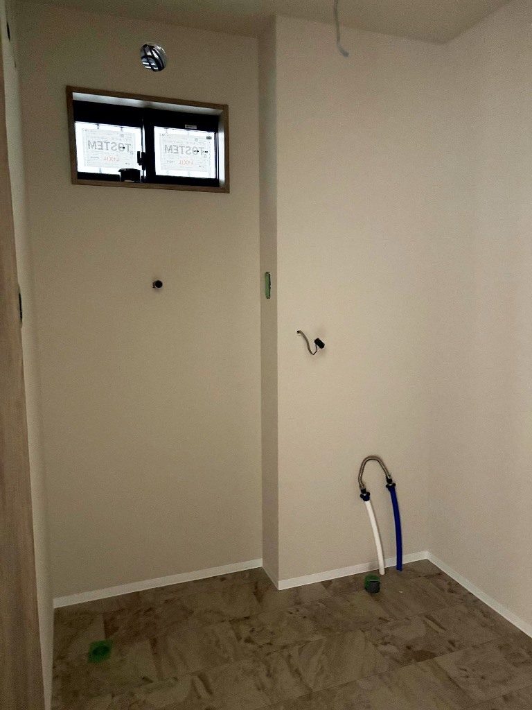 1F 洗面脱衣室 左側に洗濯防水パン、右側に洗面化粧台が設置されます