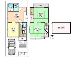 1階36.45平米 2階32.40平米、駐車1台可、有効土地面積約74.55平米・私道負担13.81平米別に有・公簿88.36平米、容積率超過物件